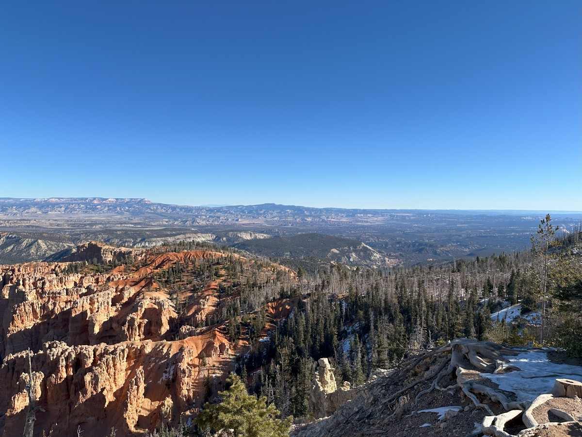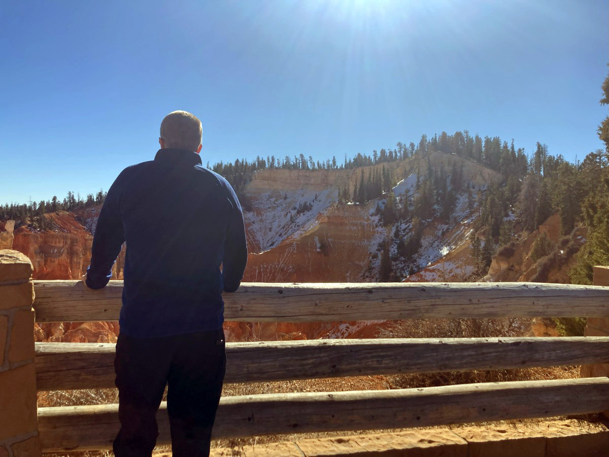 The view at Rainbow Point was mad as half the canyon has snow, whilst the other is basking in sunlight. As an aside, this crazy weather (below freezing temperatures and bright sunlight) does mean we are using copious amounts of moisturiser, lip balm and hand cream as the conditions are very drying. It feels as though we are reapplying lip balm like every 10 minutes!