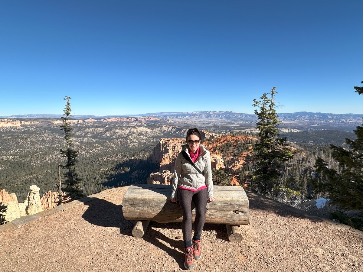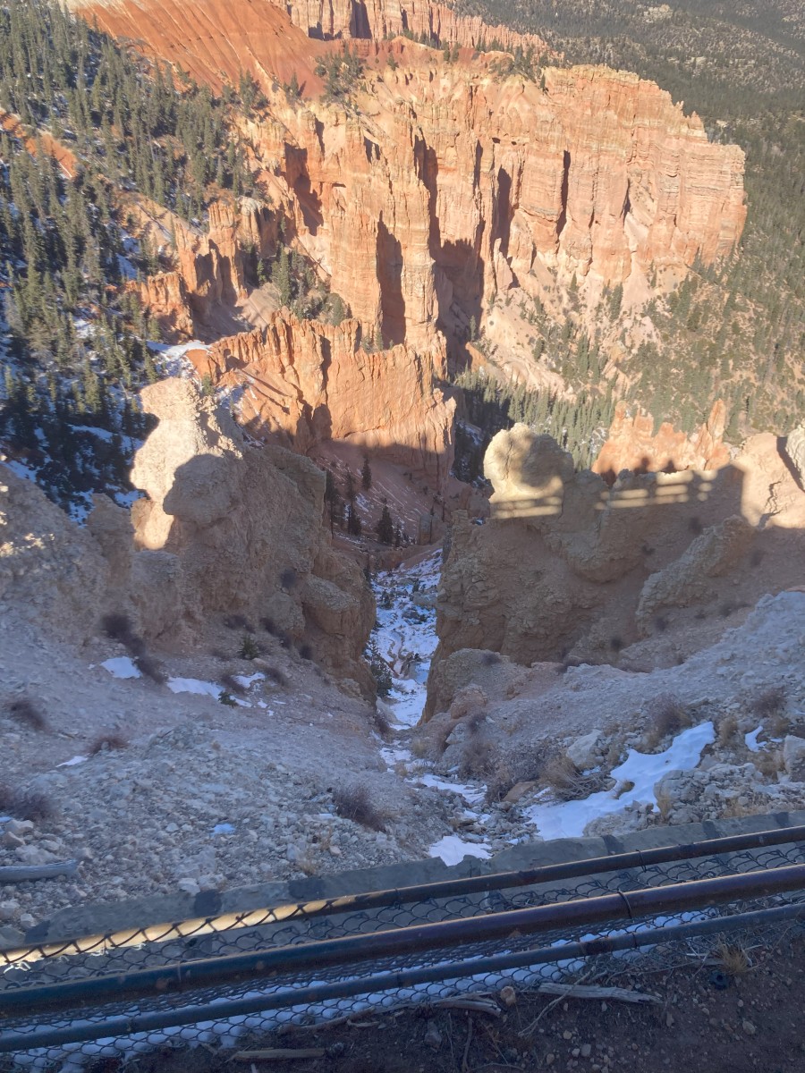 There is a short trail that connects Rainbow Point to Yovimpa Point, called the Bristlecone Loop, so we did that, being very careful where we stepped as some of the paths were covered in snow.