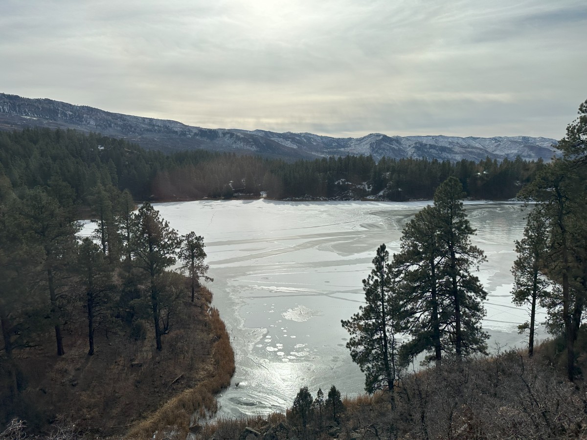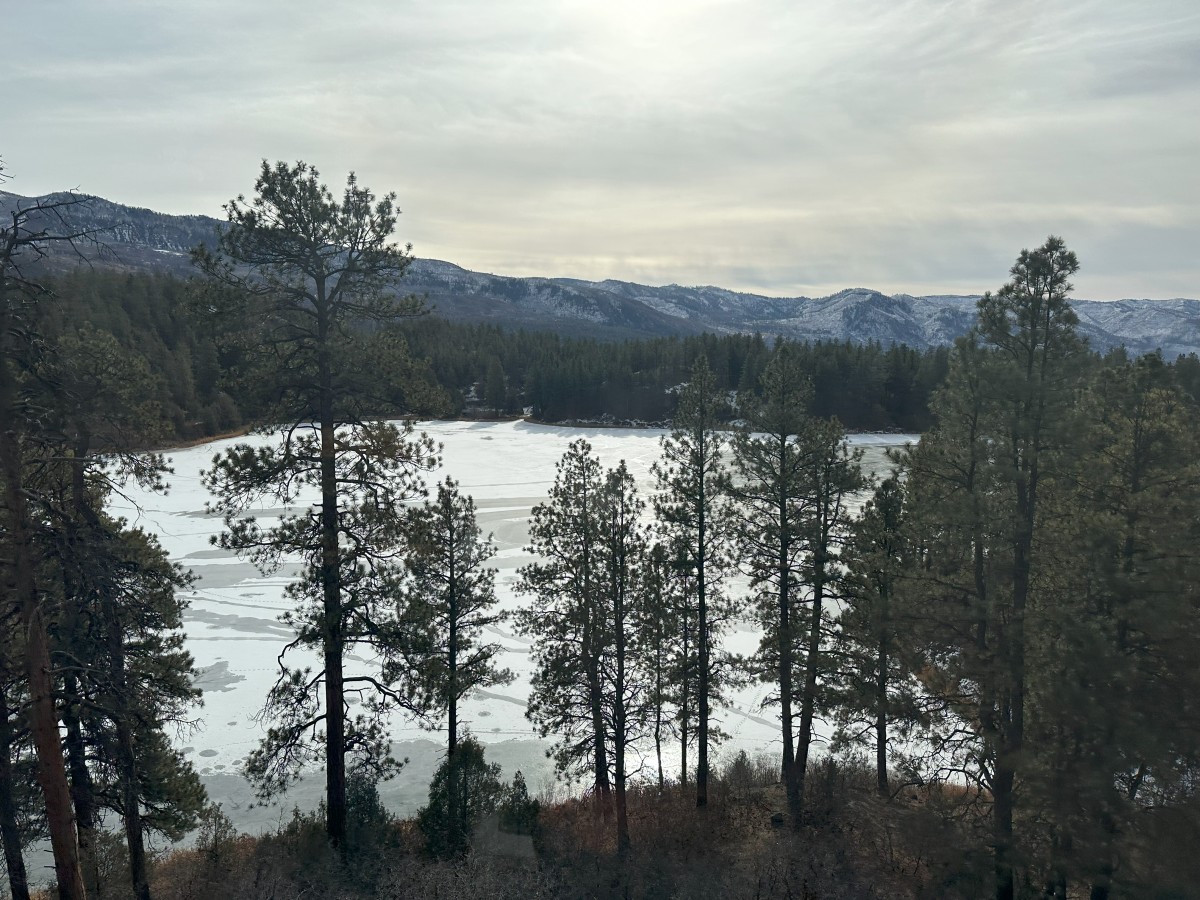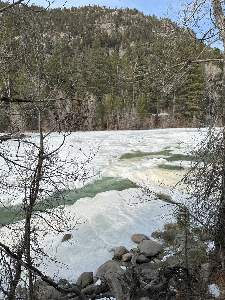 Often in the winter time there is loads of snow on this route, and Durango is a big winter sports town at this time of year. But there was actually not much snow around in the town, but quite a lot by the time we got up in to the mountains. The rivers were all frozen over too so it was very wintery by the time we reached Cascade Canyon.