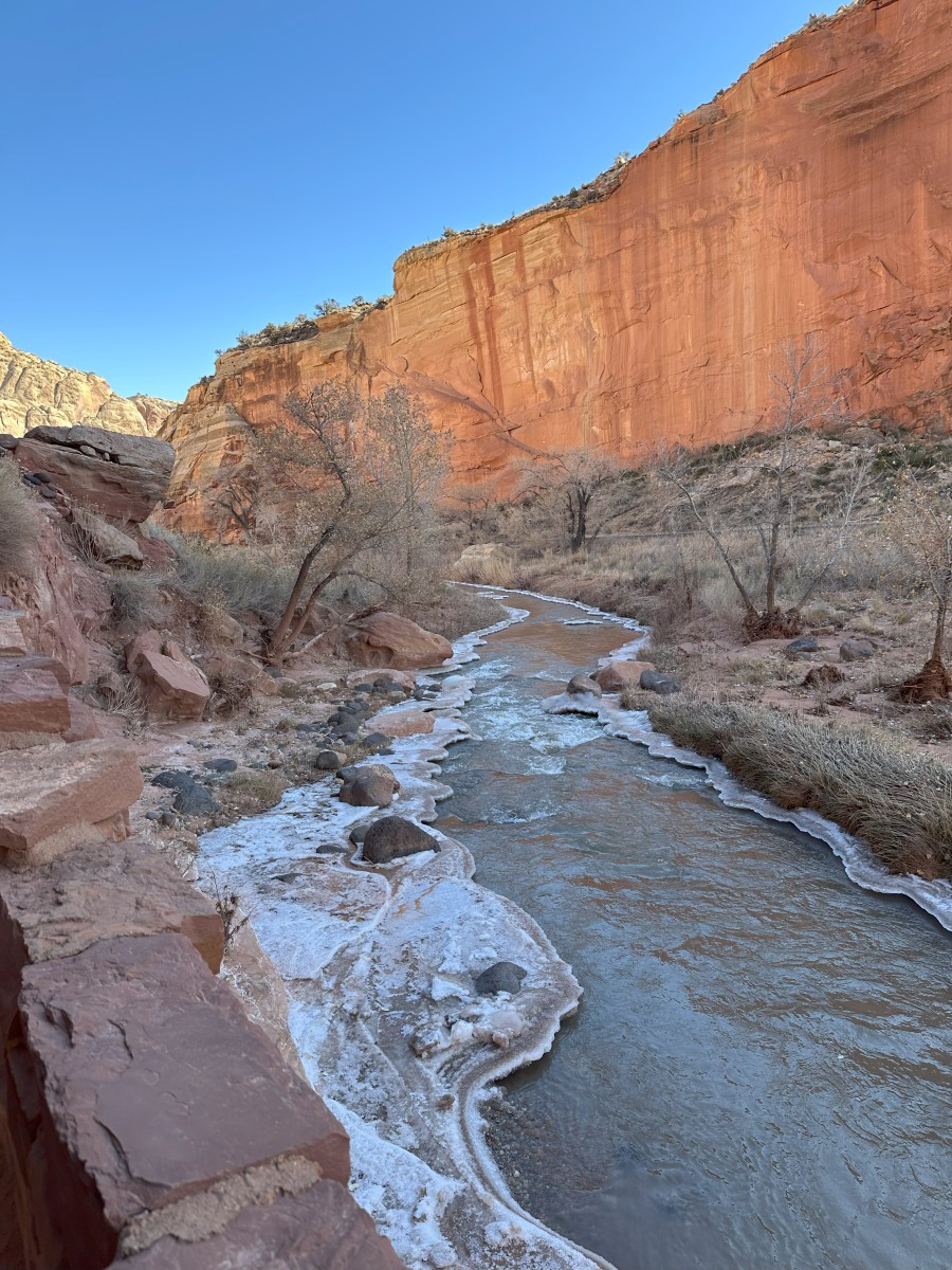 The last trail we did was “Fremont River trail” which began with an easy stroll along the river but ended with a steep climb up the canyon.