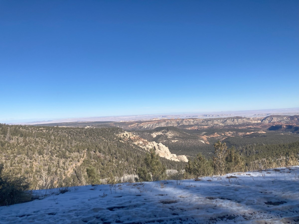 It was only a few hours drive, which we did at a leisurely pace with only an occasional stop on route to take photos. It felt like we were the only car on the road as we weaved our way through the canyon and past the ‘Grand Staircase-Escalante National Monument’ area. As we got higher we started to see lots of snow which was nice.