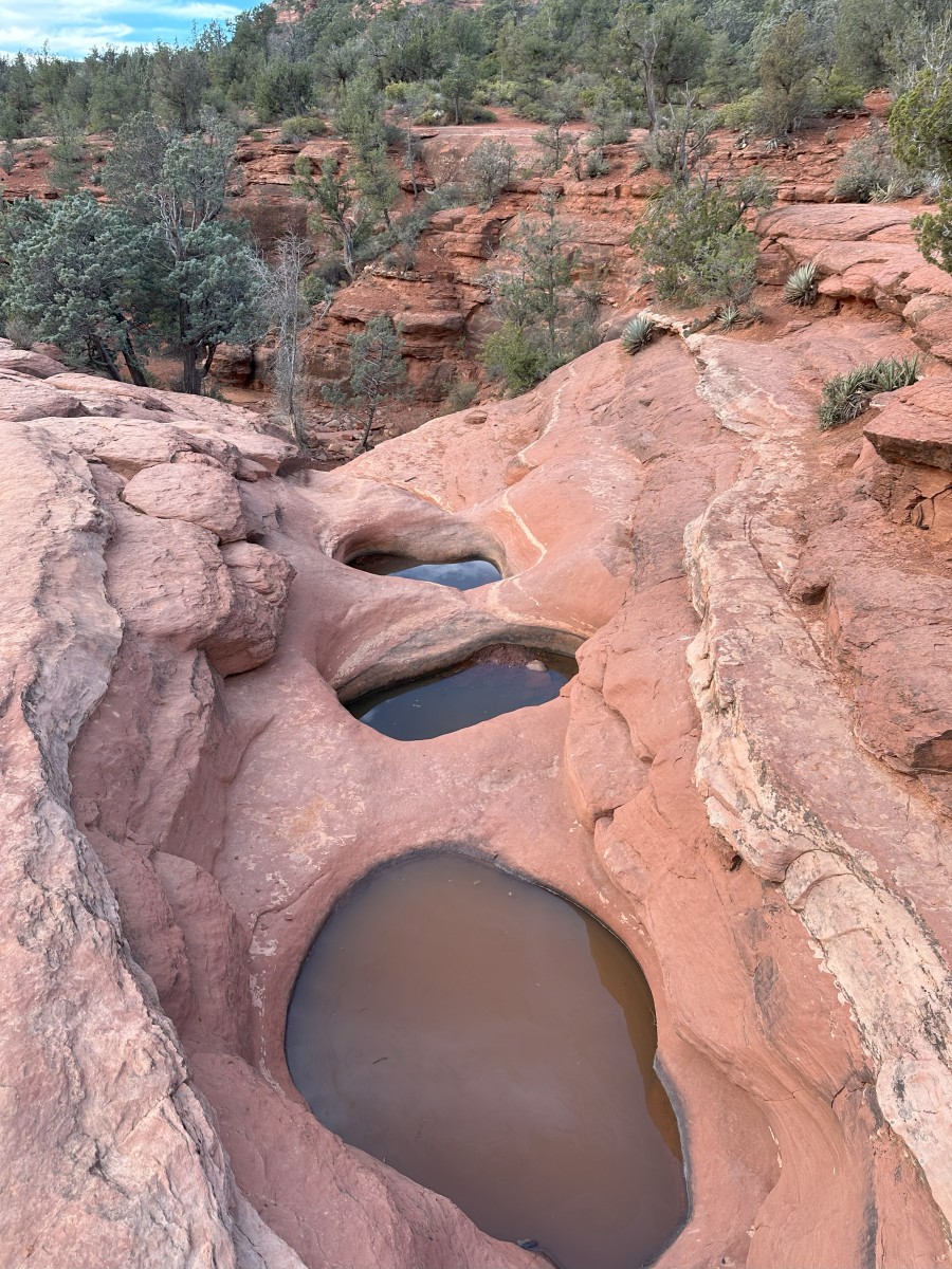 First stop was at a sink hole, which last collapsed in 1995 but is expected to collapse further again at some point. This was quite early on in the hike, so we moved on to the next point which was Seven Sacred Pools, a series of small holes which collect water, and were surprisingly still full even in the hot and dry climate in Arizona at this time of year.