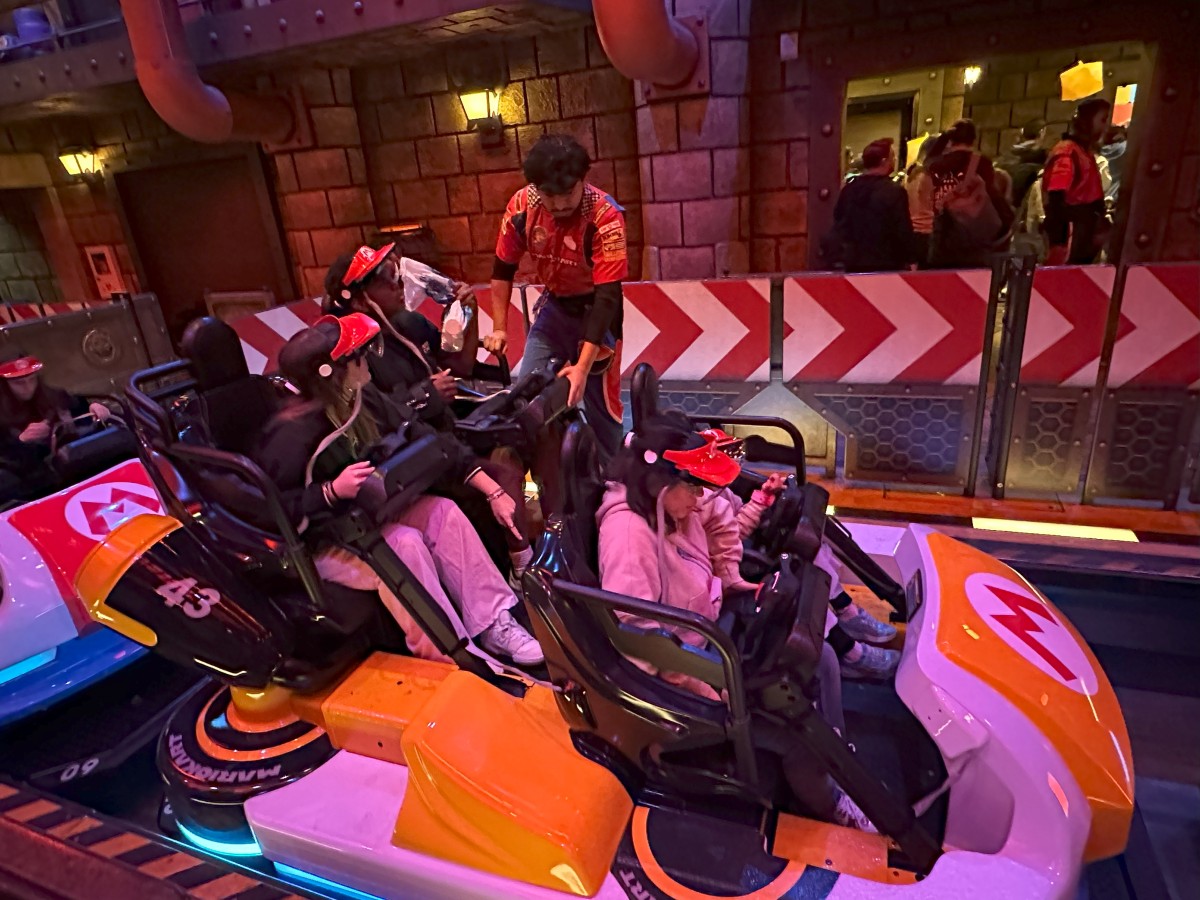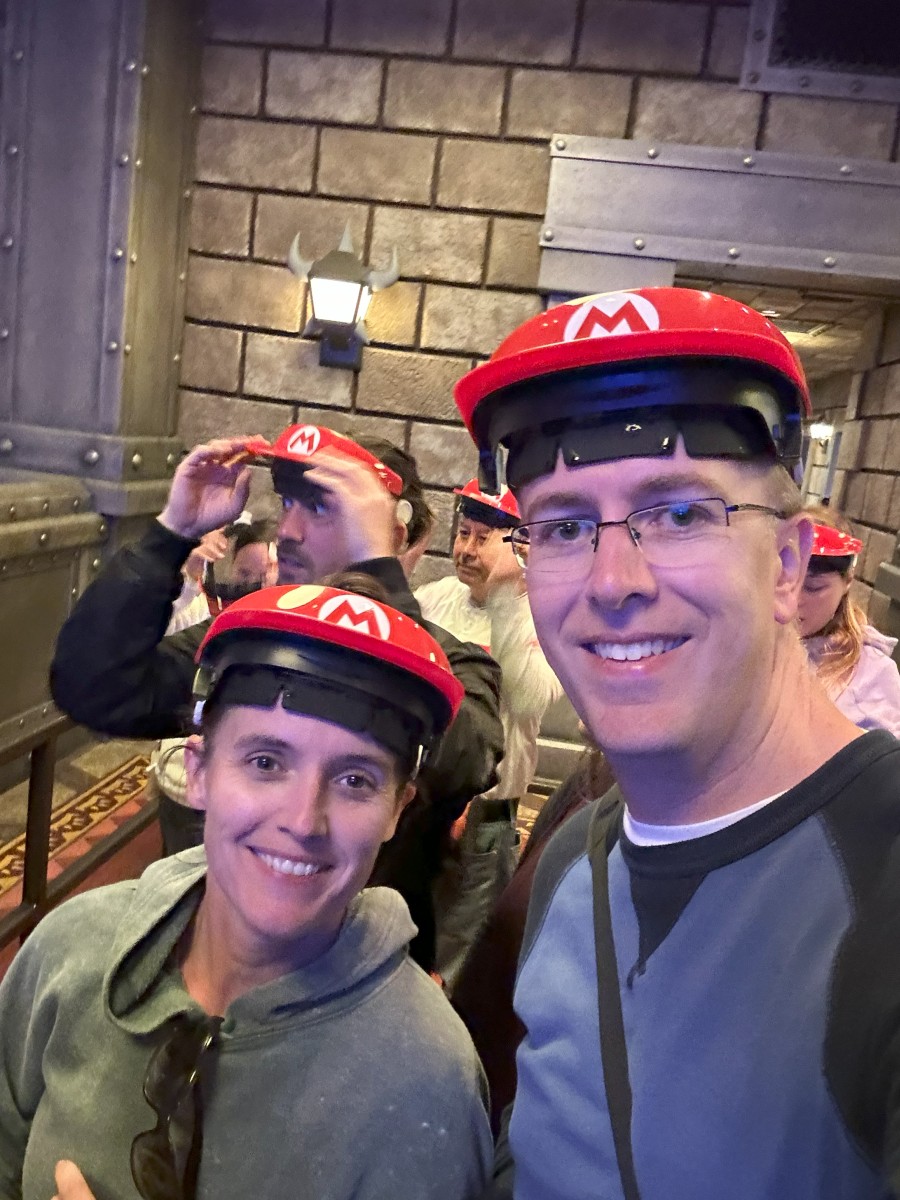 There was an awesome Mario Kart ride, where you get to ride around a track in Bowser’s castle, firing out shells to get rid of the baddies. It was very cool…unlike the augmented reality hats/visors we had to wear which were not so cool.