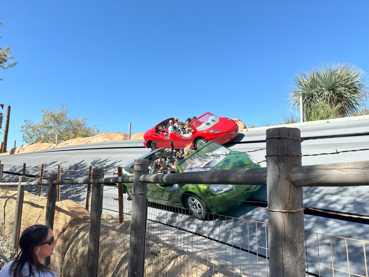 There is a ‘Cars land’ which is themed around the pixar Cars movies. This area has a really popular ride which has a standard queuing time of 2 hours! We therefore headed to this one when the park opened at 8am, and fortunately only had a short wait. Again the theming was excellent. Not sure I’d want to wait in line for 2 hours mind. It was so good we went back on it a second time later, using their single rider line to have a shorter queue time.