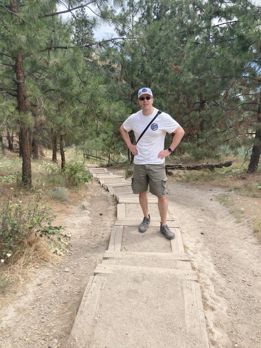 So that was the morning taken care of. The next thing on our list for the day was a hike up Knox Mountain. Called the ‘Apex trail’ it takes you to the top of Knox Mountain. After swearing off summit climbs for a while after the ‘Grouse Grind‘ we decided we were ready to tackle another climb. It was a 4km round trip and took around 1.5 hours to complete so not quite as strenuous as the GG, but it was really steep in places which did bring back memories (did I say memories, I meant nightmares!) of the Grind. Again, you are rewarded with awesome views of the city and lake below once you made it to the top.